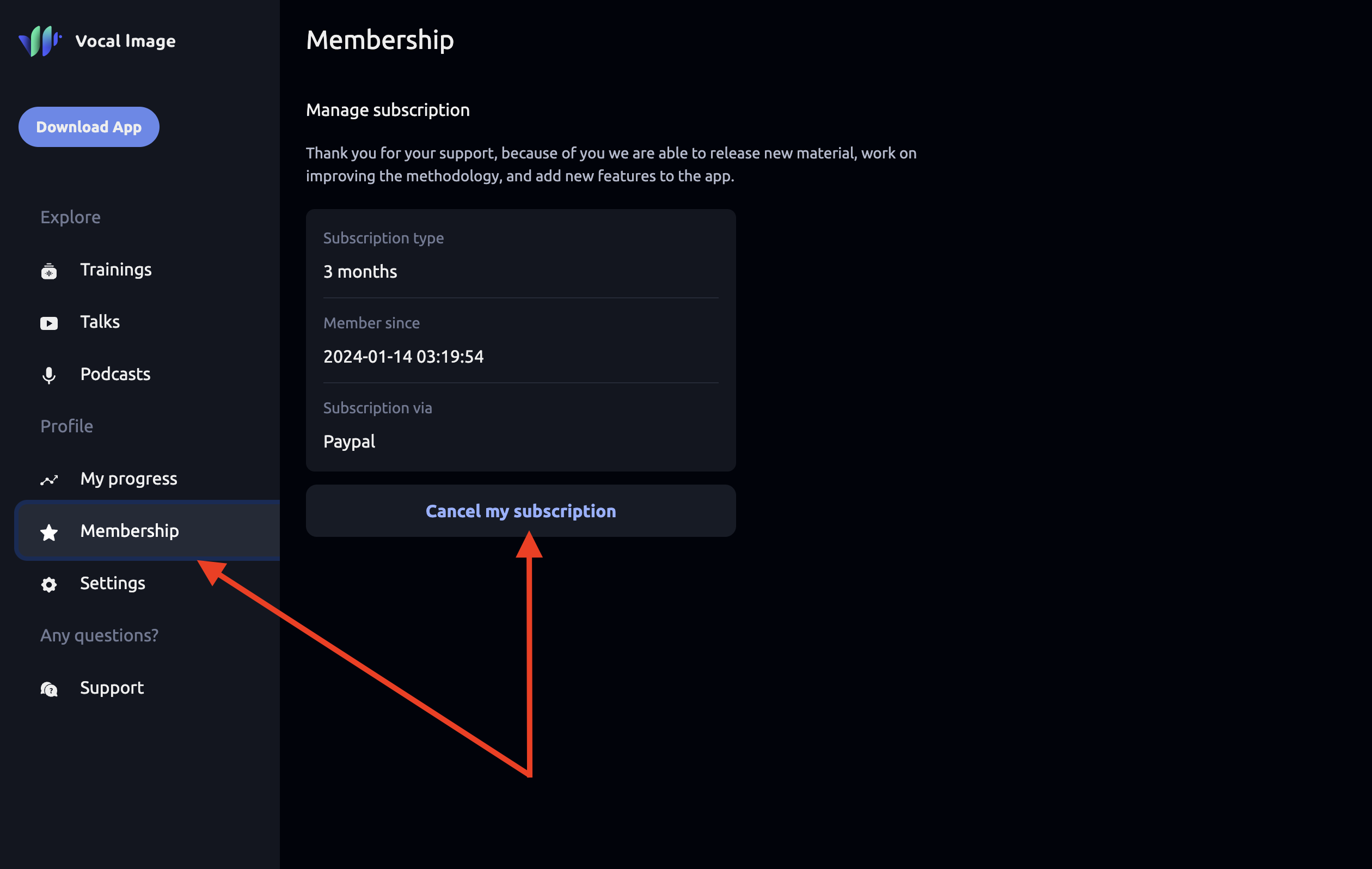 - Получите доступ к информации о вашей подписке на странице "Membership".